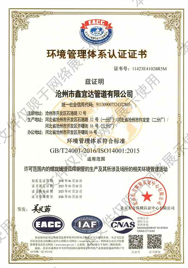 滄州市鑫宜達(dá)管道有限公司成立于2003年7月,坐落于滄州經(jīng)濟(jì)開發(fā)區(qū),占地面積40萬平方米,注冊資金1.81億元,是集螺旋鋼管生產(chǎn)、防腐加工以及無縫鋼管、卷板、帶鋼等品類鋼材經(jīng)營銷售于一體的工貿(mào)型企業(yè)。公司現(xiàn)有員工400多人,其中,中高級(jí)技術(shù)職稱的人員達(dá)120余名。 滄州市鑫宜達(dá)管道有限公司擁有9條螺旋鋼管生產(chǎn)線和3PE防腐生產(chǎn)線,可生產(chǎn)直徑219--3640mm,壁厚5.5--28mm,最高鋼級(jí)X100的各種規(guī)格防腐螺旋鋼管...
